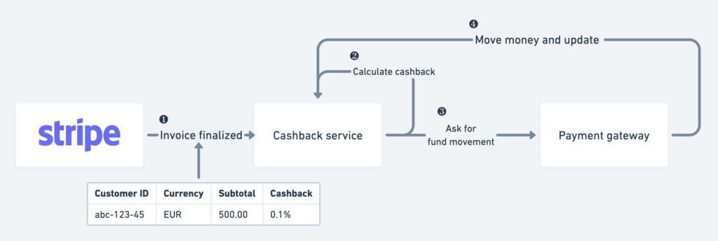 You can reuse (and abuse?) components you already have in your billing infrastructure like Stripe or Chargebee to maintain a big chunk of what cashback needs to do.