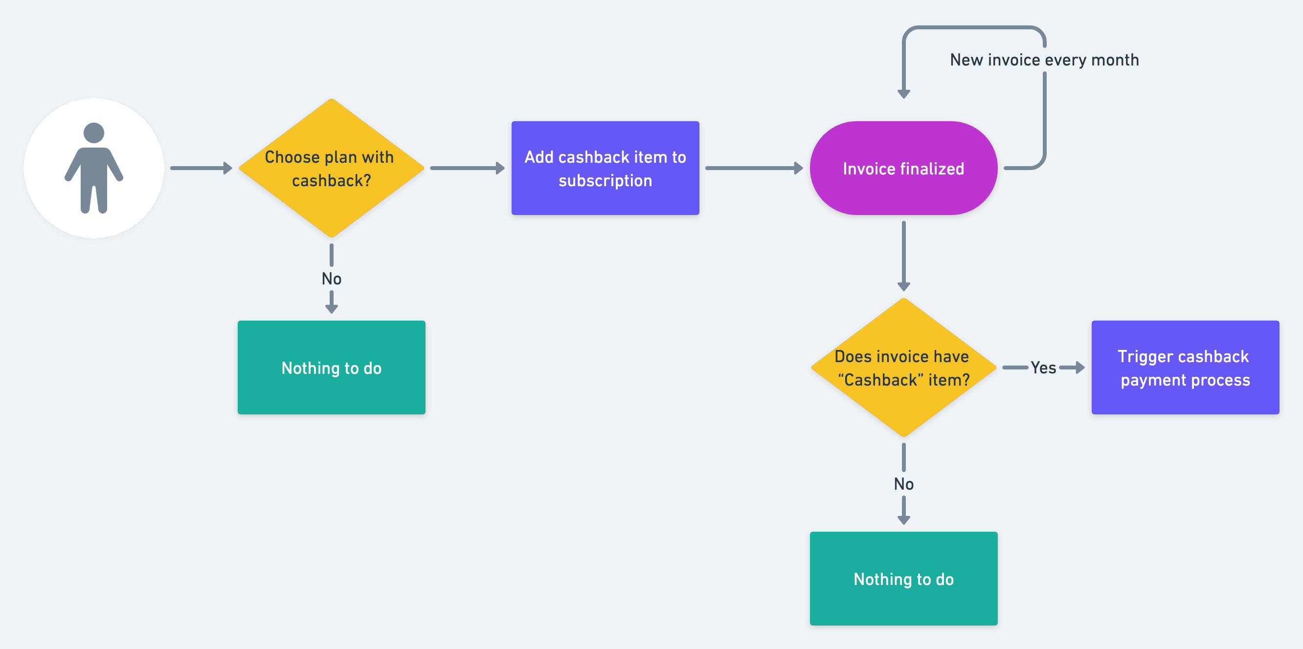 So, once a subscription with this price is created, and the invoice is finalized, we can decide to give cashback.